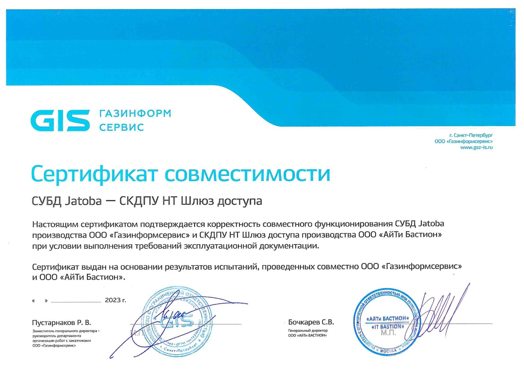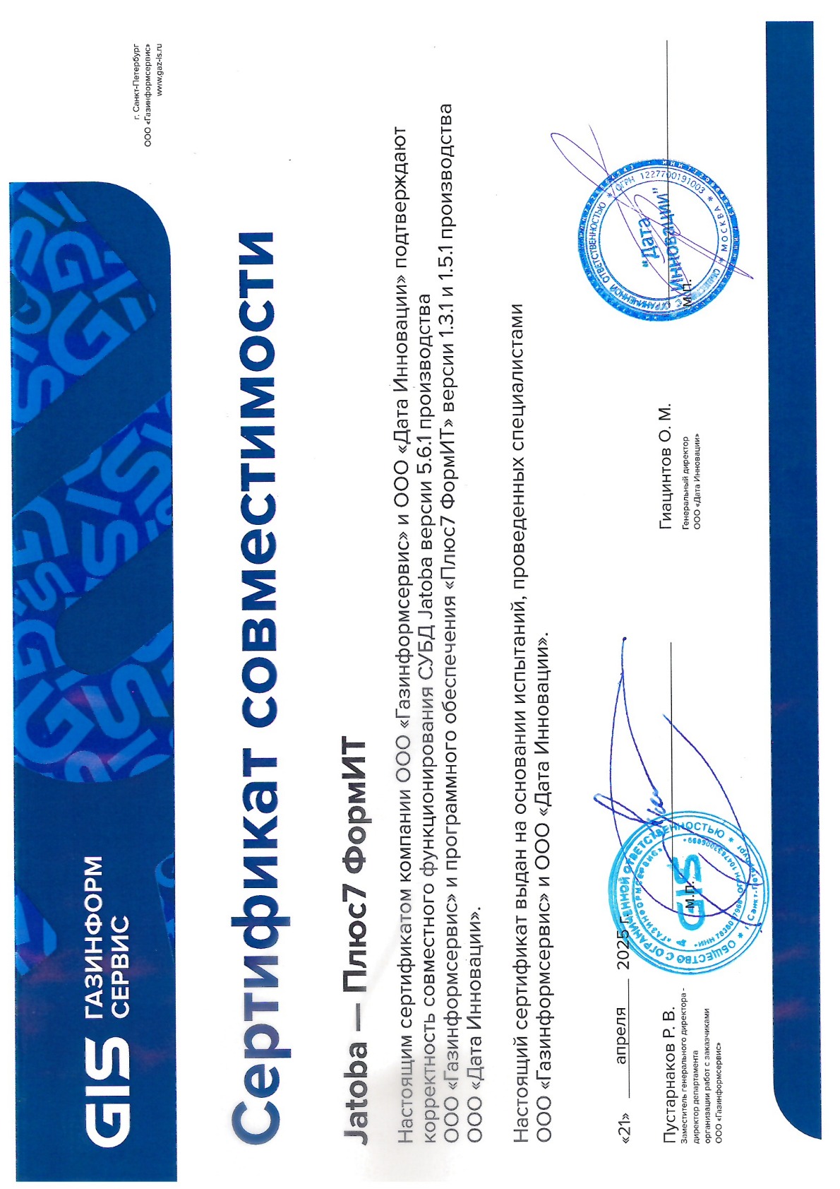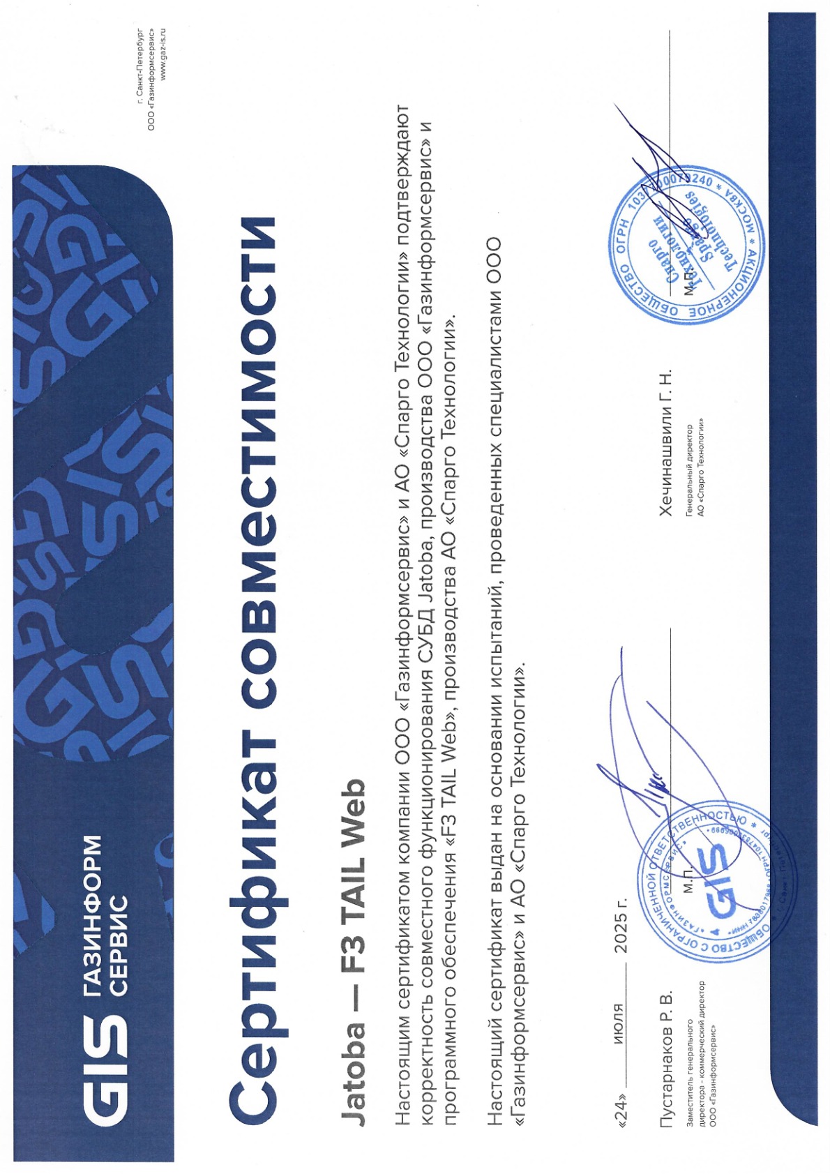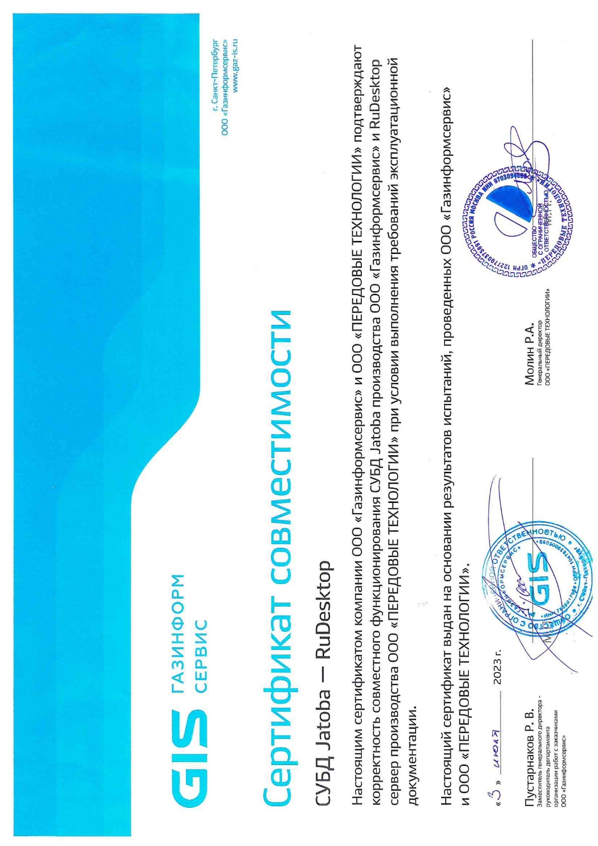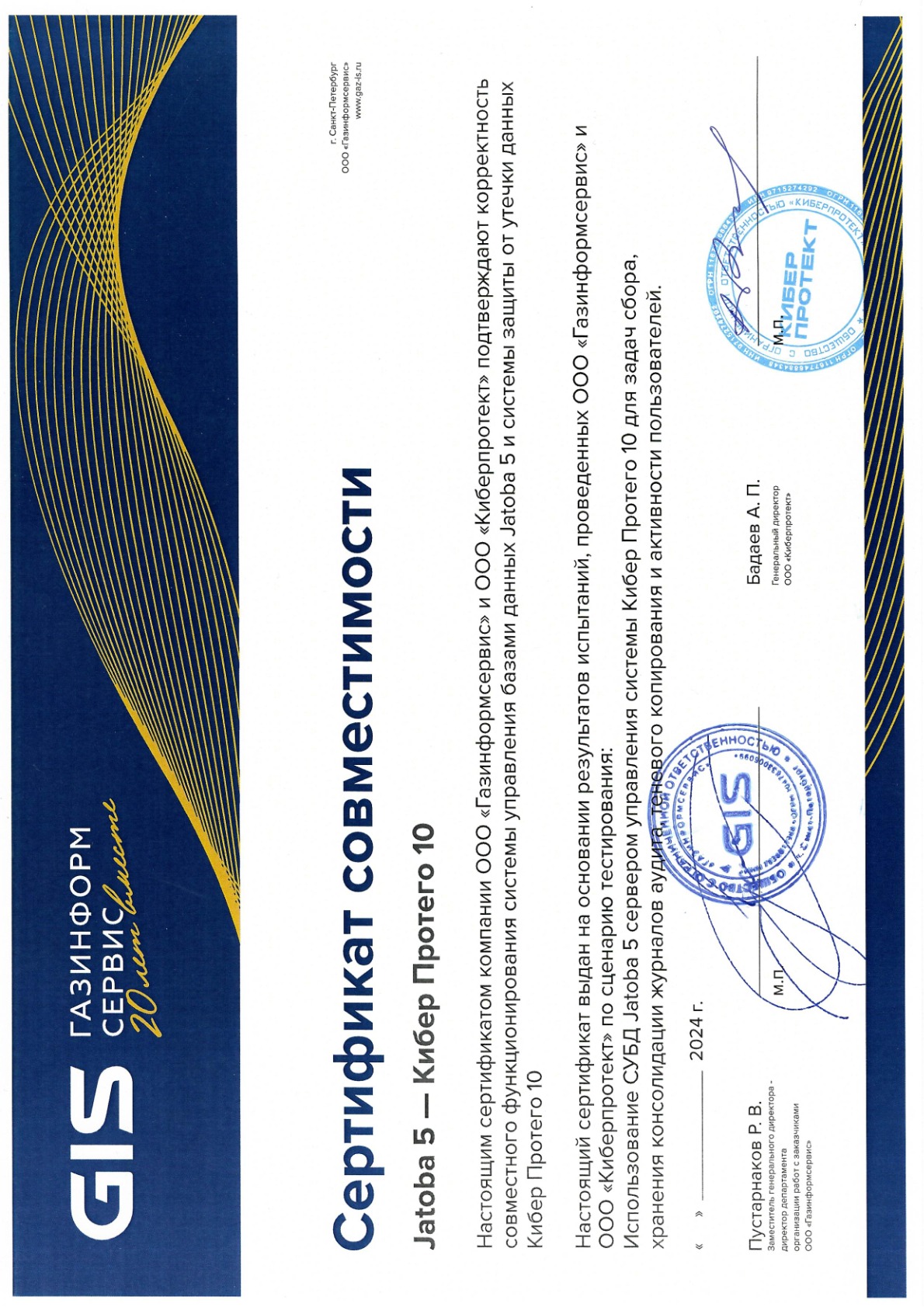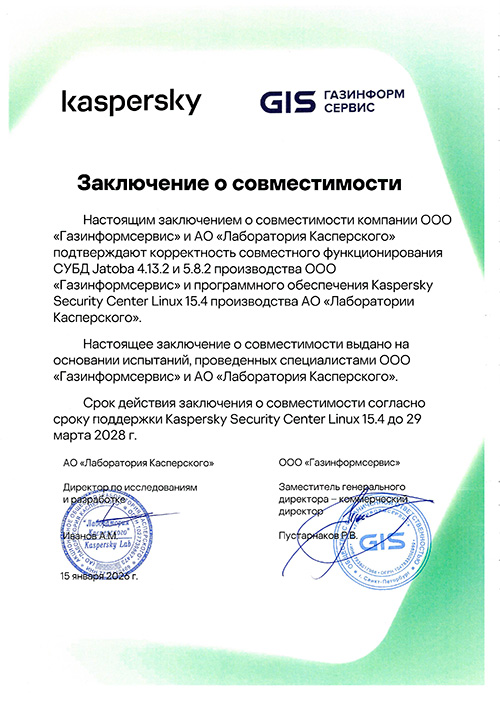 СУБД Jatoba зарегистрирована в реестре российских программ для электронно-вычислительных машин и баз данных и получила сертификат ФСТЭК России в 2020 году
