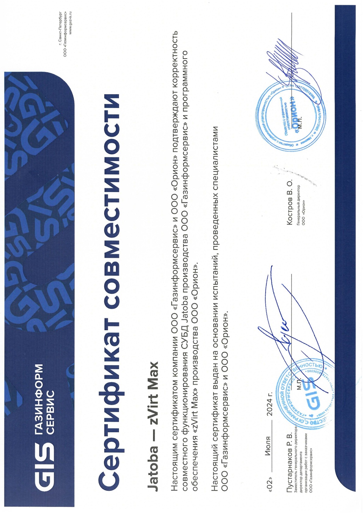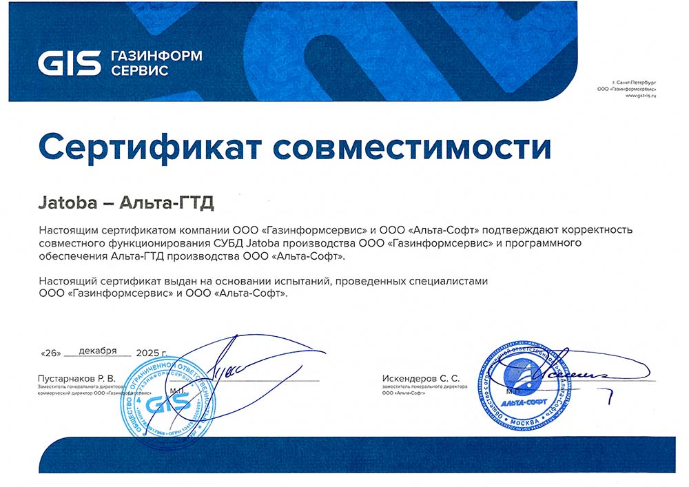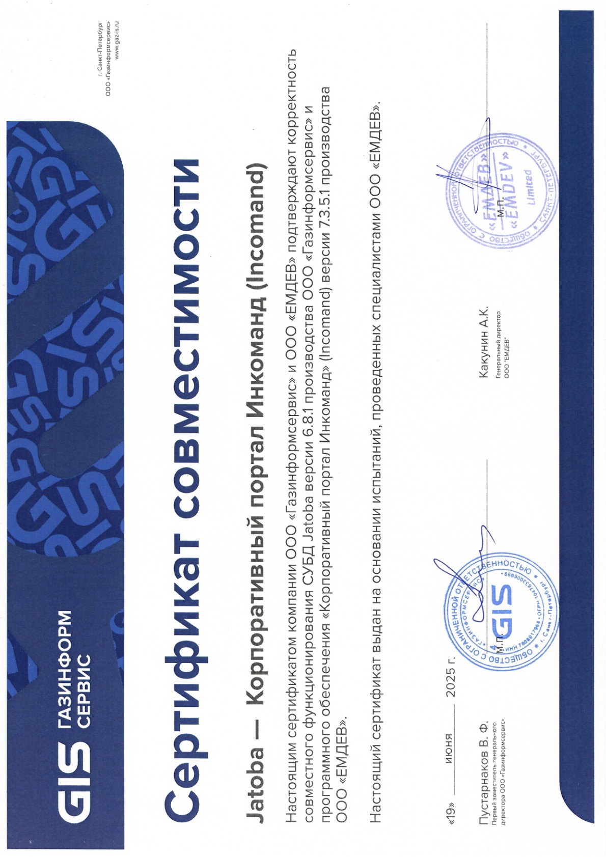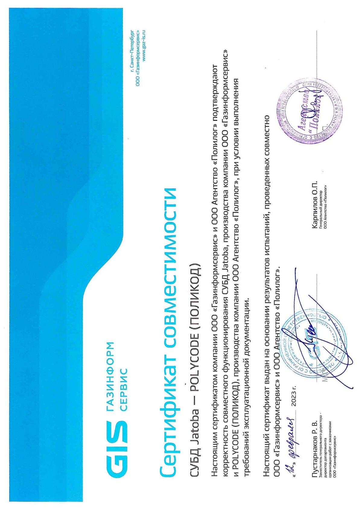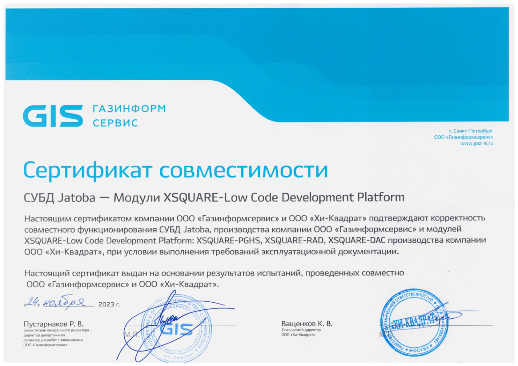 СУБД Jatoba зарегистрирована в реестре российских программ для электронно-вычислительных машин и баз данных и получила сертификат ФСТЭК России в 2020 году