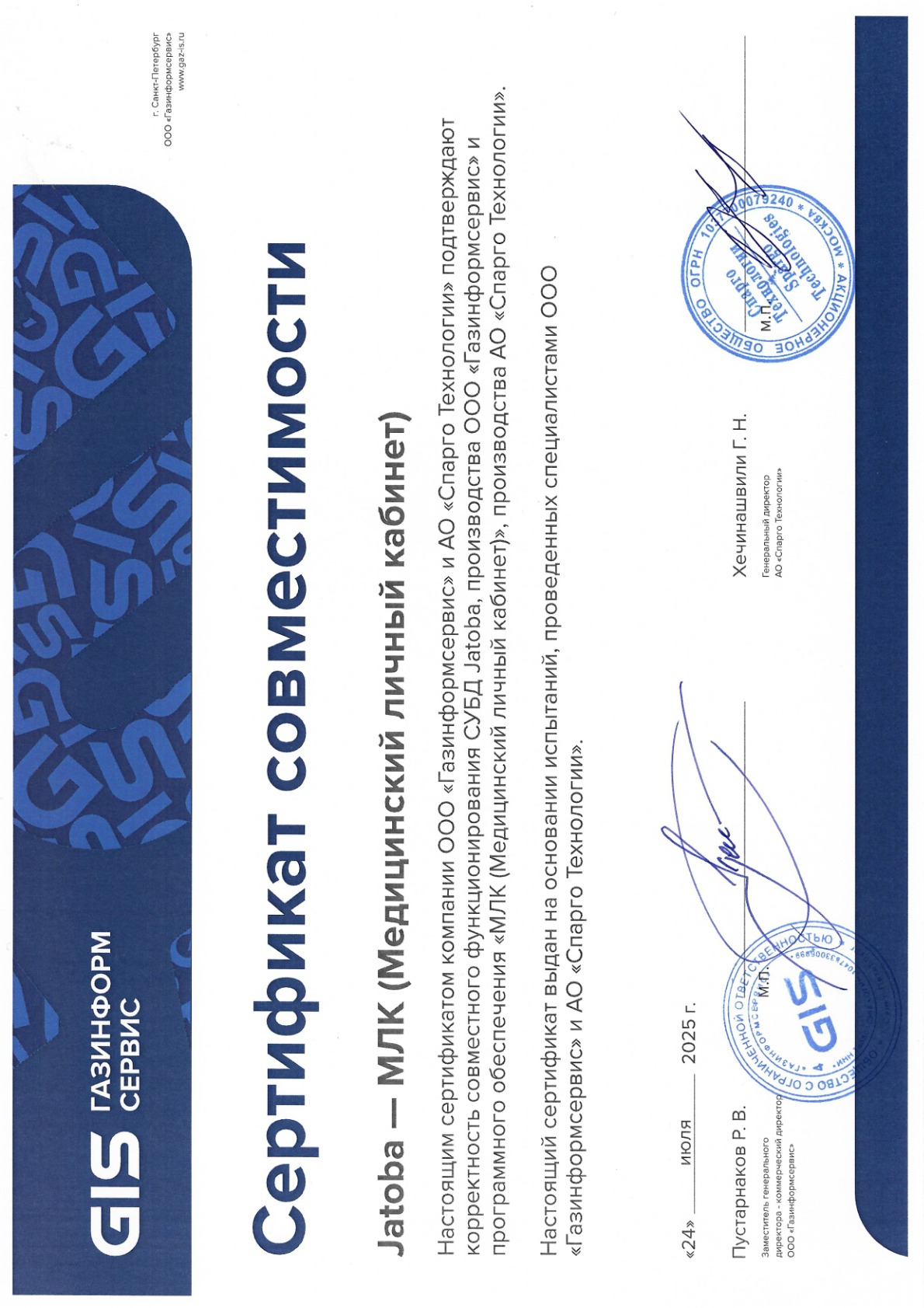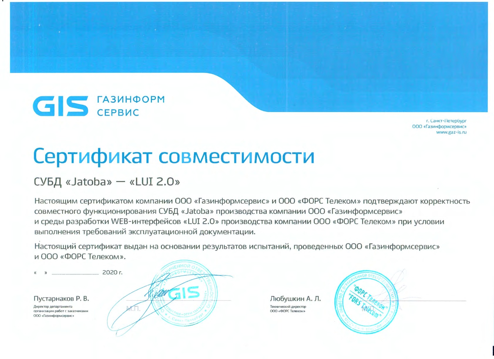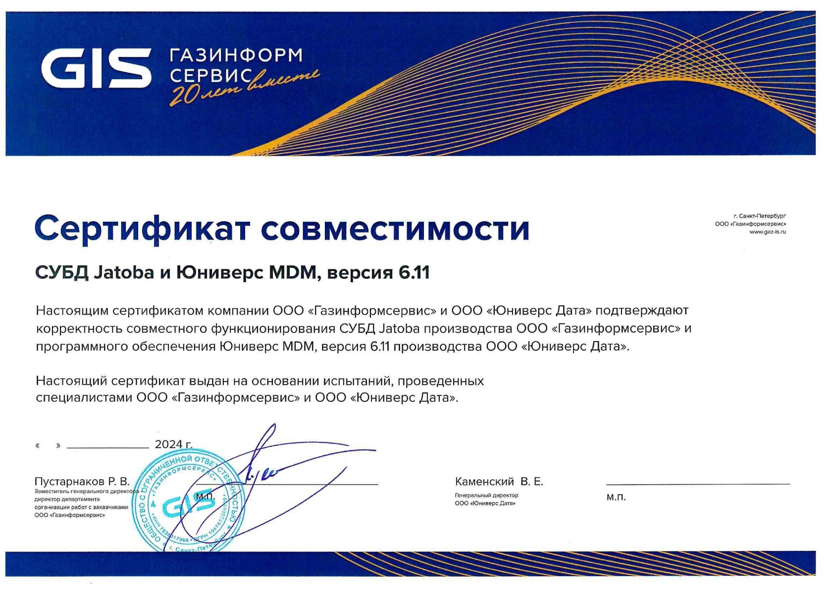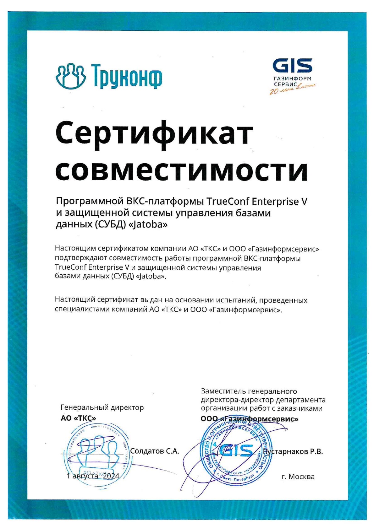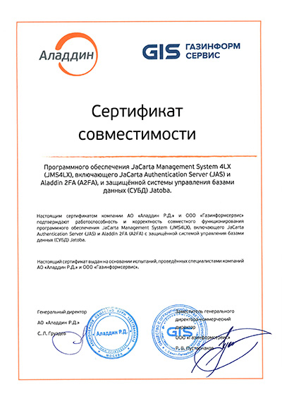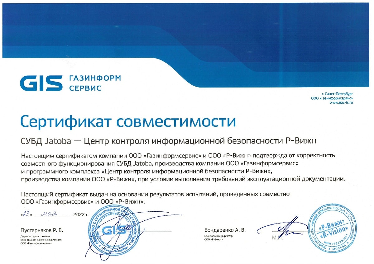 СУБД Jatoba зарегистрирована в реестре российских программ для электронно-вычислительных машин и баз данных и получила сертификат ФСТЭК России в 2020 году